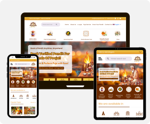 We crafted a seamless and intuitive digital experience for ePuja Services, an online platform that simplifies booking verified Pandits for various pujas and rituals.
