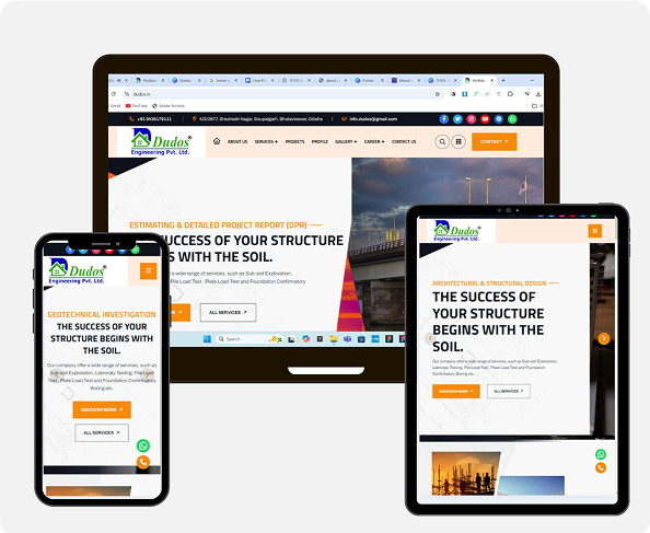 Dudos Engineering Pvt. Ltd. is a leading construction and structural analysis firm specializing in Geotechnical Investigation, DPR (Detailed Project Reports), and Architectural Design. The goal was to create a modern, user-friendly, and professional website that reflects their expertise and services.